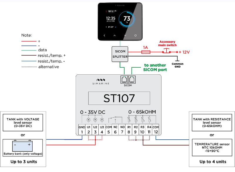 For example, let’s take a look at Simarine ST107 digital tank level module, which has three voltage inputs and four resistance inputs. How to deal with the choice of sensor type? Typically these instructions are contained in the installation and operating instructions.