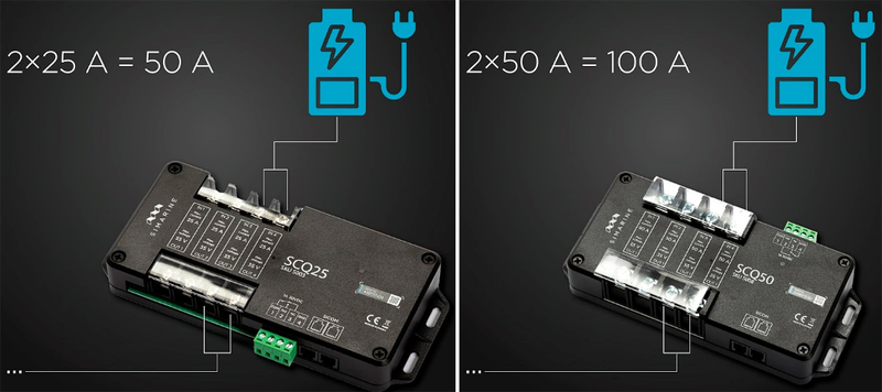 With this, you can connect each of these shunts in parallel on two channels and configure this setting via a PICO monitor or patch panel to control the two channels as one device, thereby doubling the continuous current limit to 50 A or 100 A depending on which Quadro shunt is used.