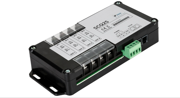 To each of them you can connect 4 devices that consume or produce electric current, as well as an alarm relay.