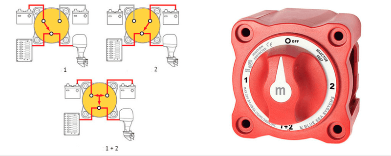 Then came the combination battery switches. If two batteries are installed on a boat, truck or car, one of which is used to start the engine and the second to power the equipment, then a four-position power switch is used.