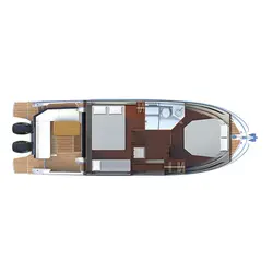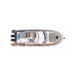 En ce qui concerne le confort, toutes les conditions sont réunies ici pour que chacun puisse passer un moment confortable. L'Antares 11 Fly est contrôlé par deux postes - dans le salon et sur le flybridge, ce qui permet au barreur de passer un maximum de temps avec sa famille et de ne pas rester seul à la barre lorsque toute la famille est réunie pour déjeuner dans le salon ou le cockpit.
