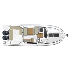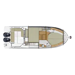 L'Antares 9 présente deux avantages indéniables : ce bateau semble plus grand et plus cher qu'il ne l'est vraiment. Grâce au corps allongé, l'espace interne est radicalement augmenté. Deux cabines avec une douche, ainsi qu'une cuisine, sont situées sur le même niveau, ce dont la plupart des bateaux de cette taille ne peuvent pas se vanter.
