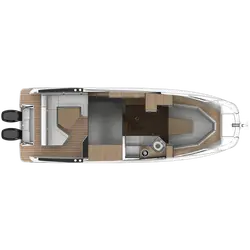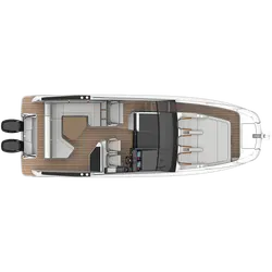 Le Bowrider Flyer 10 est un yacht à moteur avec un cockpit étendu, une vaste zone de bain de soleil à l'avant et un espace de vie unique sous le pont. Le concept de promenade intelligente est utilisé ici, permettant de se déplacer librement et en toute sécurité sur le pont.