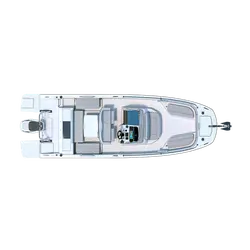 Le chantier naval Beneteau positionne le bateau à moteur Flyer 8 SPACEdeck avec moteur hors-bord, console centrale et cabine Cuddy comme un bateau de pêche. Mais cette version de 8 m de la série Flyer semble avoir un public plus large, pas seulement les pêcheurs en mer.