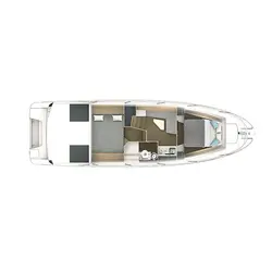 Pour le Gran Turismo 36, la disposition habituelle du cockpit a été révisée. La cuisine avec grill électrique a été déplacée vers la plateforme de baignade et placée du côté tribord, en face se trouve un espace de bronzage, qui offre un grand espace de rangement et donne accès à la salle des machines à commande électrique. Cet espace lounge particulier en bord de mer se poursuit par le cockpit avec un canapé en U pour huit personnes et une table. Le dos du canapé se transforme, si nécessaire, en appuie-tête d'une chaise longue à l'arrière.