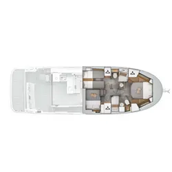 Sur le Beneteau Swift Trawler 48, vous pouvez accueillir jusqu'à 8 personnes pour la nuit - dans trois cabines et dans le salon, si vous convertissez la table et le canapé en lit.