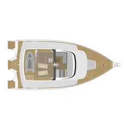 - À l'avant du trimaran se trouve une timonerie entièrement vitrée avec de l'équipement de navigation et un salon confortable avec un luxueux canapé en L où vous pourrez vous détendre avec des amis ou des membres de la famille et profiter des vues.