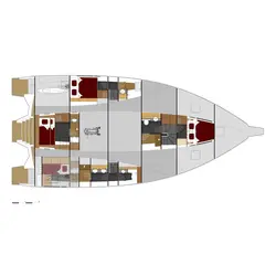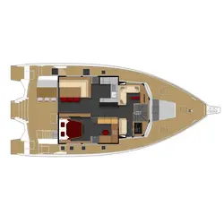 La disposition du trimaran peut être modifiée par le propriétaire pour inclure deux cabines arrière avec un ou deux couchages et des salles de douche séparées. La configuration du Leen 56 pour 5 cabines avec une capacité de 11 passagers est disponible si vous souhaitez acheter le trimaran à des fins de location.