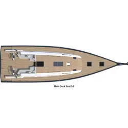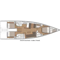 Le First 53 mélange habilement esthétique traditionnelle et moderne. Sa proue droite et élancée offre un espace avant généreux, tandis que sa largeur maximale de 5 mètres à l'arrière le distingue comme un navire robuste et sûr en mer. Le cockpit méticuleusement conçu assure un mouvement avant dégagé et un accès facile aux passavants depuis les deux postes de barre. Le pont flush, le rouf bas et l'aspect élégant mettent en valeur ses qualités de pedigree. Équipé d'un mât de première qualité, d'un gréement de pont avancé et d'un plan de voilure puissant mais facile à manœuvrer, le First 53 ouvre une nouvelle ère.