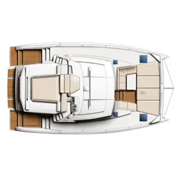 La "porte Bali" caractéristique est une grande porte baie pivotante avec entraînement hydraulique, vous permettant de relier directement le cockpit au salon - de cette manière, vous obtenez une zone sociale inégalée avec une cuisine et des tables à manger pour un grand groupe de personnes (ce bateau est optimisé pour 10 personnes à bord).