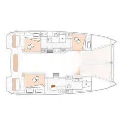 Exterior by Patrick le Quément and interior design by Nauta Design managed to create the most comfortable living and working conditions on such a relatively small catamaran. You can refine their ideas using additional packages and possible space zoning options.