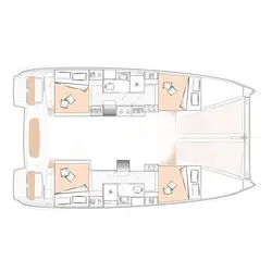 Options for the sea catamaran Excess 11 for sale allow two types of layouts - with 3 or 4 cabins and double beds and, respectively, with 3 or 4 bathrooms with separate showers. Additional crew cabins featuring deck access can be placed forward of the hulls.