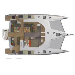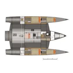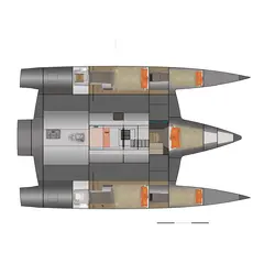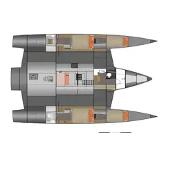 Le trimaran est idéal pour un couple qui aime voyager en mer et est prêt à passer beaucoup de temps dans les océans du monde, voyageant de pays en pays. Leur espace de vie est le pont principal, où tout est prêt pour une vie confortable et un contrôle pratique du navire.