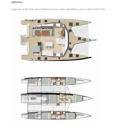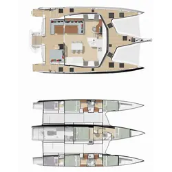 En fonction de l'objectif de l'achat (pour la location ou un usage personnel), diverses modifications du NEEL 52 en termes d'organisation de l'espace sont possibles : de 4 à 6 cabines d'invités doubles, sans compter la cabine du propriétaire. Vous pouvez aménager 1 à 2 places pour l'équipage.