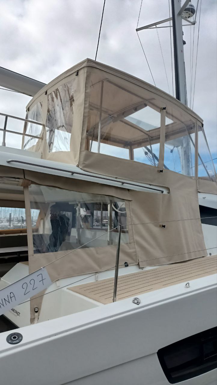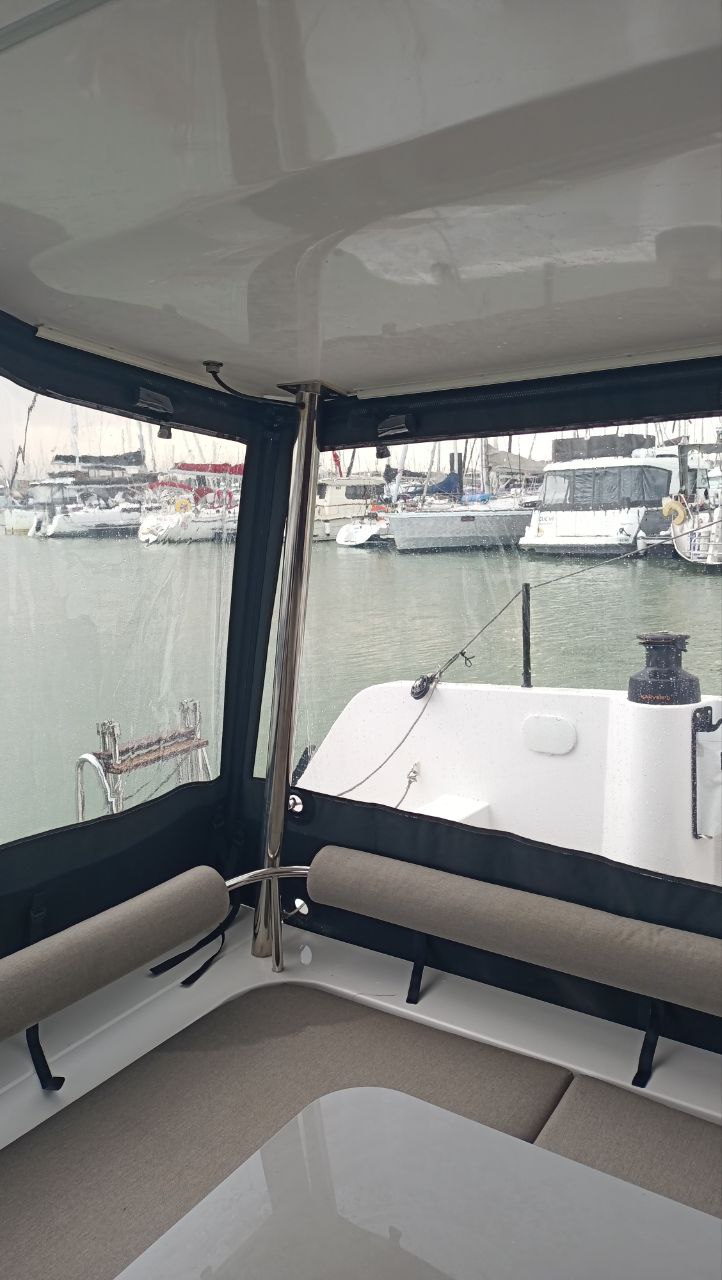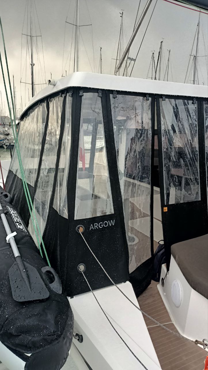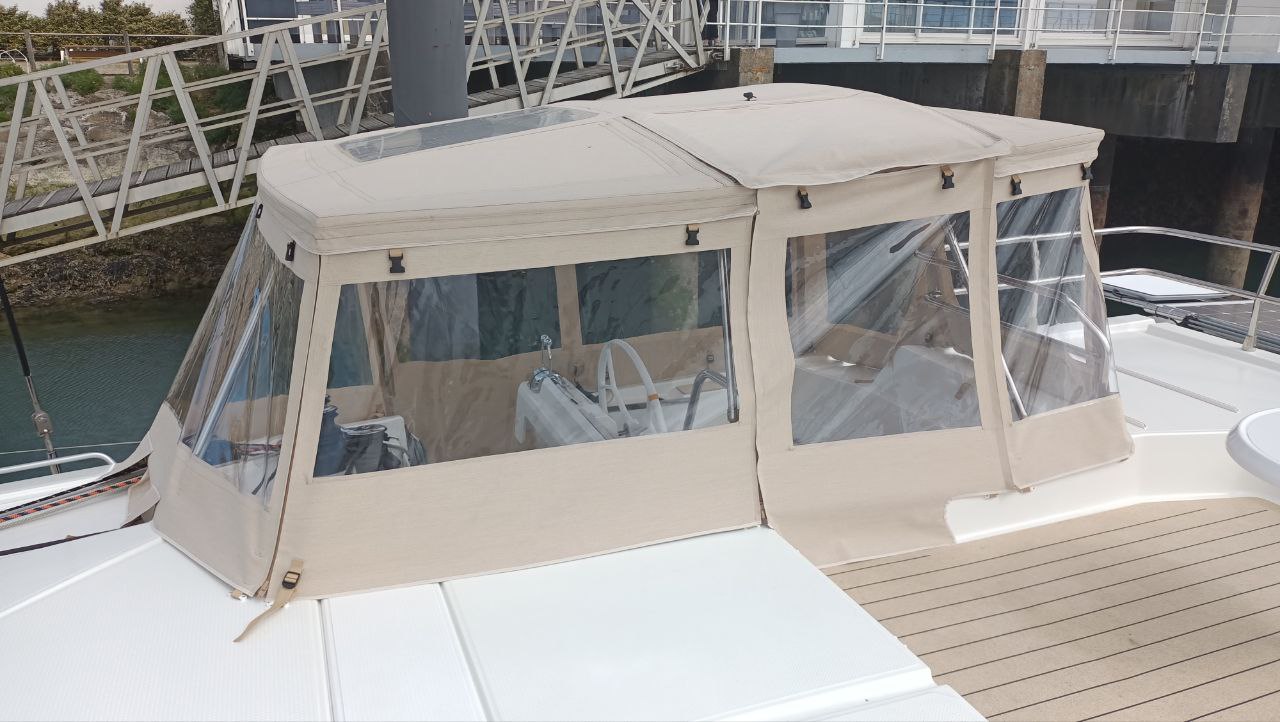 Tente de cockpit est cofectionnée sur mesure en Sunbrella Plus et Cristal y compris les fixations