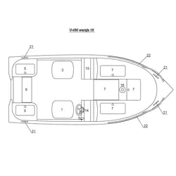 With the length of 4.6 m and width of 2.02 m this vessel strikes the perfect balance between professional expensive fishing boats and amateur ones. There are 26 versions available, providing different combinations of additional equipment, depicted on the schematics in the Layouts sections.